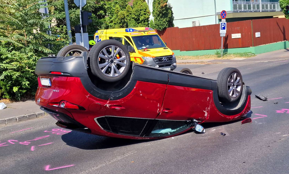 Információink szerint a Volkswagen megkezdte a kanyarodást, amikor hirtelen egy Mazda CX-30 haladt át előtte keresztben. Illetve csak haladt volna, mivel a taxi a jobb oldalának ütközött, amitől a Mazda kifarolt, megbillent, majd a tetejére borulva állt meg. A BudaPestkörnyeke.hu legfrissebb híreit ide kattintva éred el.
