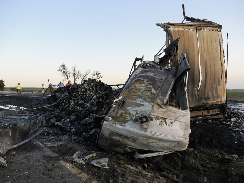 Teljesen kiégett mindkét kamion