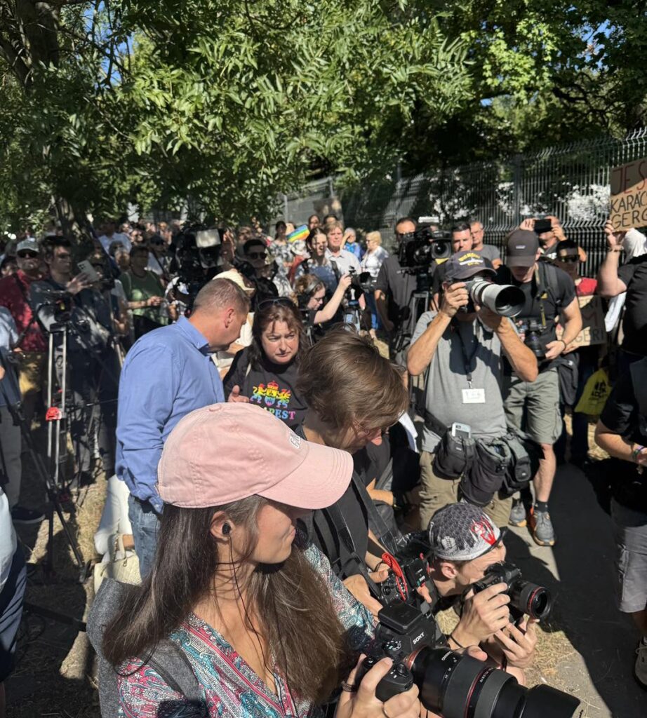 Jámbor András, Józsefváros országgyűlési képviselője, a kihallgatást megelőzően tart egy békés, támogatói eseményt az NNI épülete előtt, amelyre minden velük egyetértő demonstrálót várnak. Jámbor András közösségi oldalán azt írja, hogy a rendőrség nem engedte a demonstrálókat a Nemzeti Nyomozó Iroda épületéhez, hanem egy 250 négyzetméteres, Budakeszi úti területre korlátozta őket.