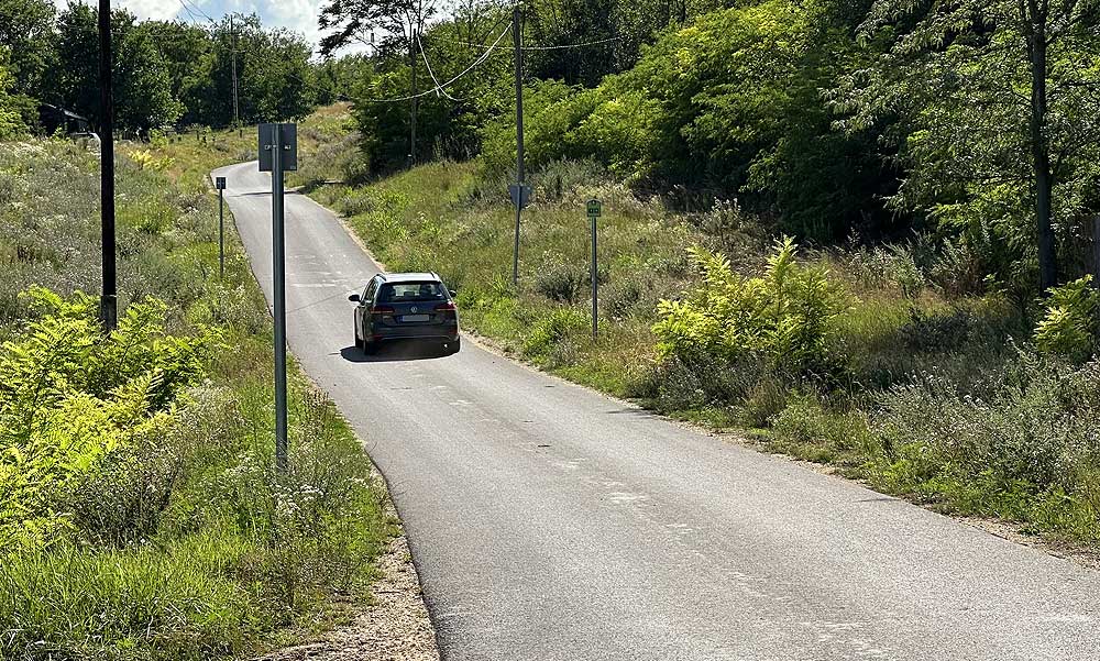 Ezen a keskeny, lejtős úton biciklisek és autók is közlekedhetnek