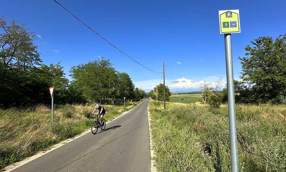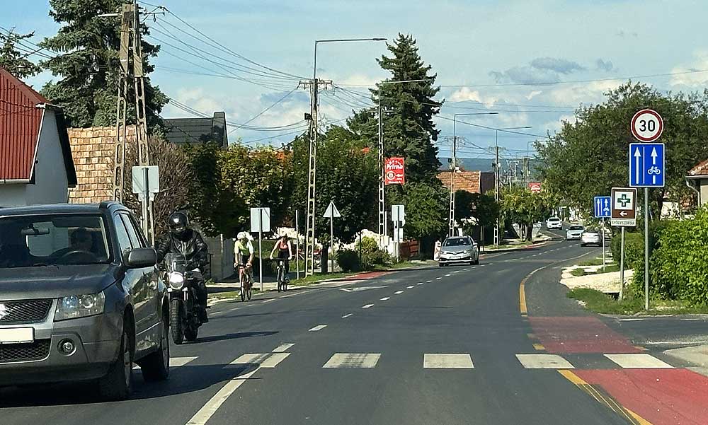 Etyeken viszont mindent úgy csináltak, ahogy Biatorbágyon nem akarták. A főutcán vezetik végig a bringásokat, ráadásul nem is az autósoktól fizikailag elválasztott aszfaltcsíkon, hanem a meglévő autóúton, ahol csak egy sárga záróvonal jelzi az autósoknak, hogy az út széle kerékpárút. Etyeken még az sem segíti a biciklisek biztonságát, hogy a falu főutcájának nagy részén 30-as sebességkorlátozás van érvényben az autósok számára.