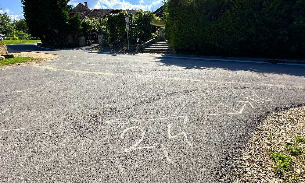Kétségbeesett feliratok az aszfalton, közvetlenül a halálkanyar előtt