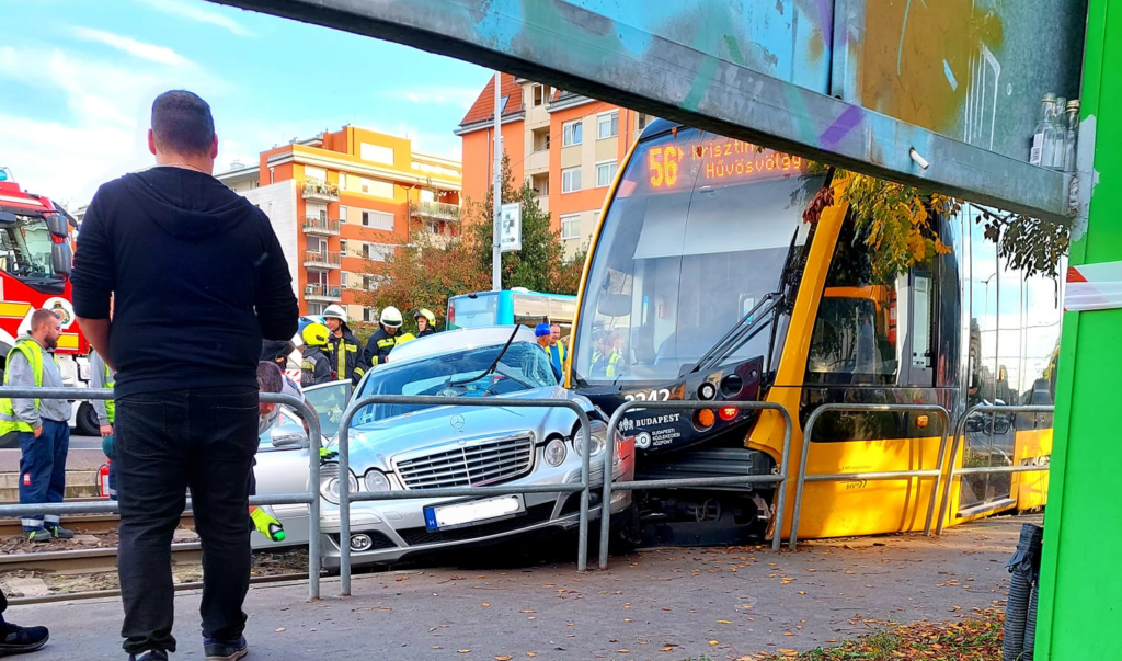 Mercédesszel ütközött az 56-os villamos