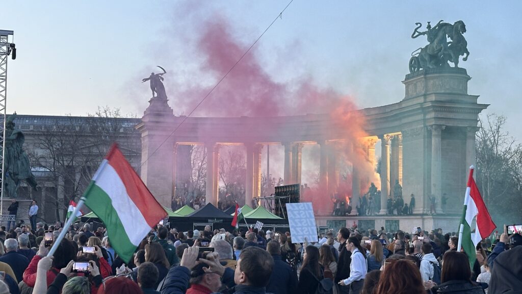 Magyar Péter arra kérte híveit, hogy ne egy, hanem öt embert vigyenek el április 12-én. Beszéde végén azt kérte, mindenki menjen vele és csinálják végig a hátralévő 28 napot. “Itt állunk a győzelem kapujában” – mondta beszéde végén Magyar Péter.