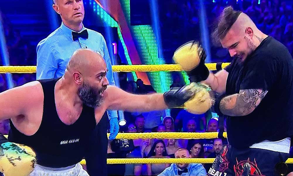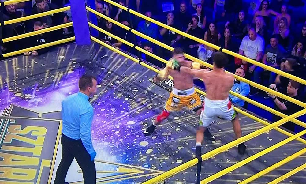 A műsor harmadik meccsét, középsúlyban Kamarás Iván és Lotfi Begi játszotta. Kamarás lassúbb volt, Lotfi hatalmas jobbosai előbb-utóbb betaláltak. Az egyik menetben Kamarás padlóra is került, rászámoltak, végül talpon maradt a meccs végéig. Pontozással Lotfi Begi győzött.