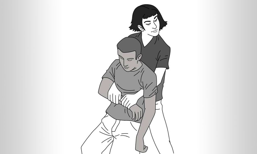 Ez a módszer a kiemelés legkíméletesebb módja. Először a sérültet a csípőjénél fogva oldalra kell fordítani, majd a két hóna alatt átnyúlva kezeinkkel a balesetes ép alkarját kell fogni. Combunkra húzzuk a sérültet, a hát a mellkasunkon támaszkodjon.