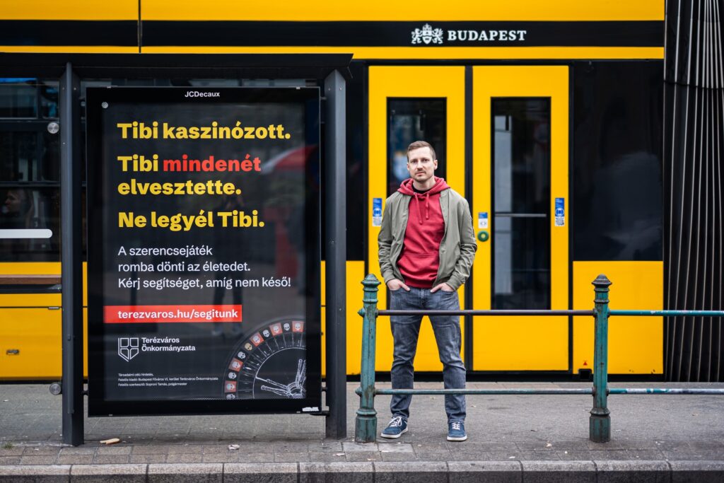 „Tibi kaszinózott. Tibi mindenét elvesztette. Ne legyél Tibi” – ez a terézvárosi önkormányzat üzenete. “Nem a házak homlokzatain, hiszen évek óta harcolunk az épületeket és az egész városarculatot elcsúfító molinók ellen, hanem a megállókban és online felületeken. A kampánnyal arra hívjuk fel a figyelmet, hogy a szerencsejáték ugyanolyan veszélyes, mint a drog, az alkohol, a dohányzás, hiszen függőséget okozhat, életeket, családokat tehet tönkre, és a függőség gyakran végződik öngyilkossággal” – írja a polgármester.