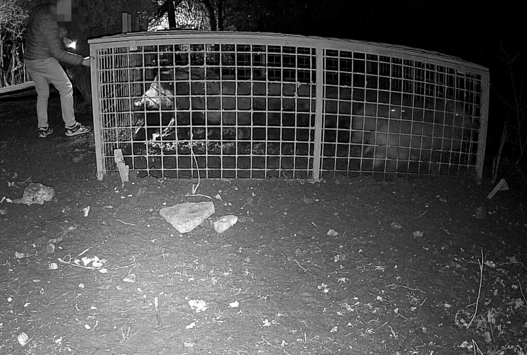 Az egyik kihelyezett vadkamera felvételén az látszik, hogy az egyik éjszaka folyamán két ismeretlen személy egy már lezárt ketrecből 10 befogott vaddisznót szabadon enged. Ez a lépés szabályt sért, veszélybe sodorja a kerületben élőket, és hátráltatja a szakemberek munkáját is.